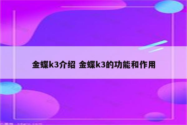 金蝶k3介绍 金蝶k3的功能和作用