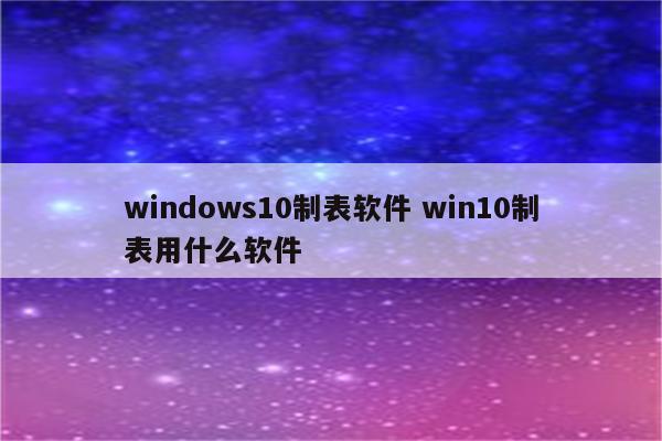 windows10制表软件 win10制表用什么软件